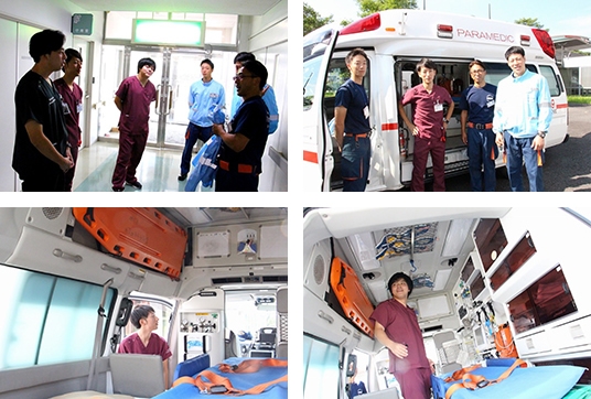 まずは朝のミーティングで、出動する際の説明を受けたあと、救急車の中を見学させてもらいました。医療器具が整然と配置され、どこに何があるか一目でわかります。